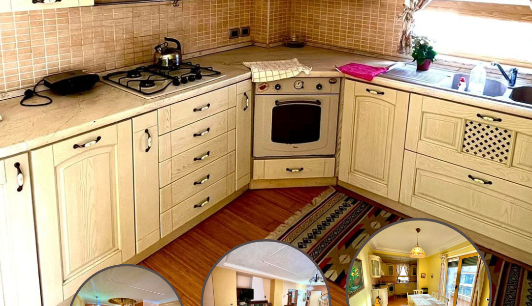 📐Sipërfaqje:284m²/sallon+kuzhine;3 dhoma fjetjeje;3 tualete.
